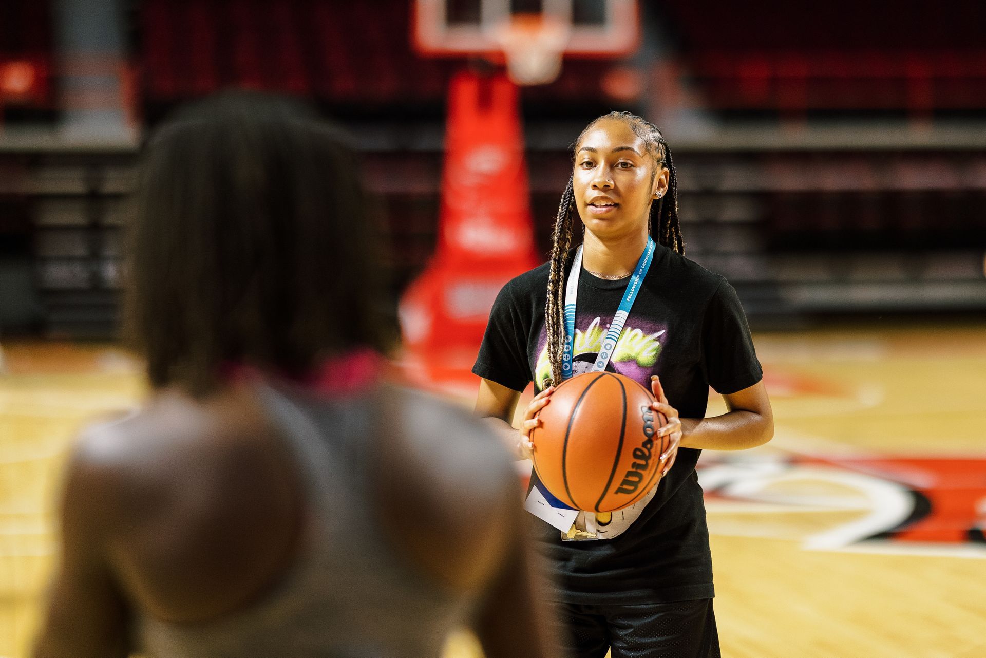 The Gym Host oversees gym activities to ensure safety and a welcoming environment while leading devotionals during practice.